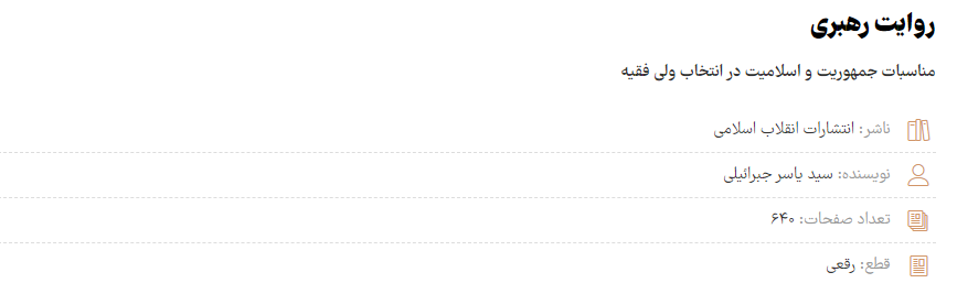 کتاب «روایت رهبری» حاوی نکاتی جدید و منتشر نشده از نحوه انتخاب حضرت آیتالله خامنهای به عنوان رهبر انقلاب اسلامی در سال ۱۳۶۸ و بخشهایی منتشرنشده از خاطرات سیاسی ایشان است.